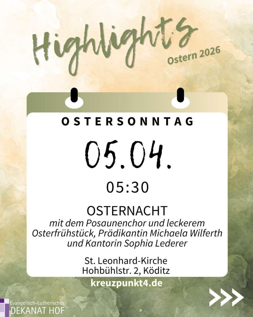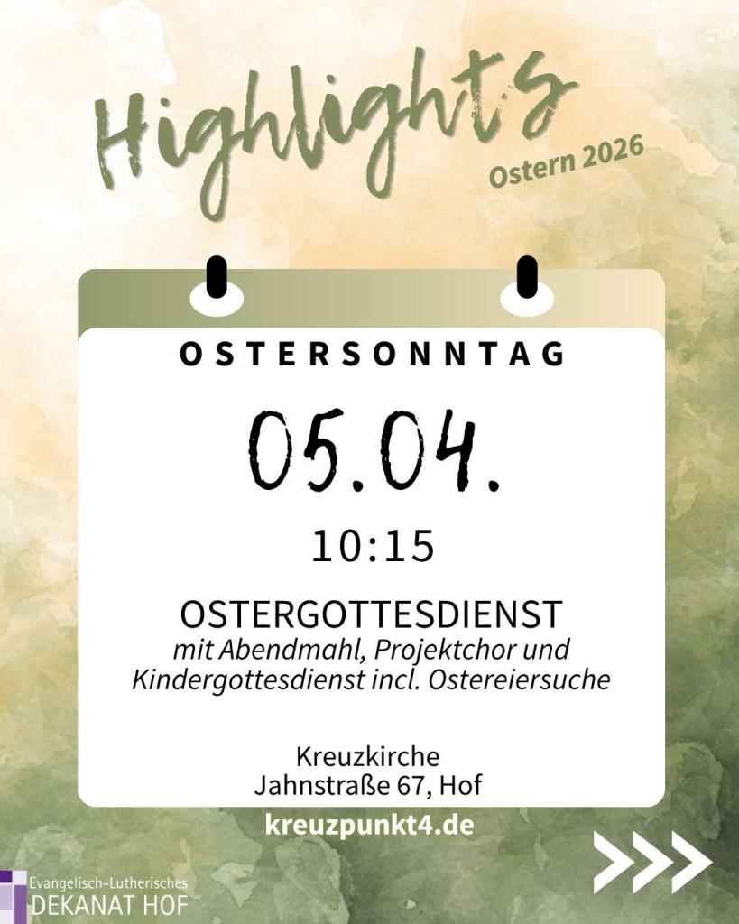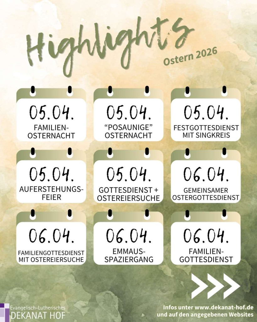 Unsere Highlights zu Ostern 2026 finden Sie in der Bildergalerie. Weitere Termine finden Sie unter www.evangelische-termine.de